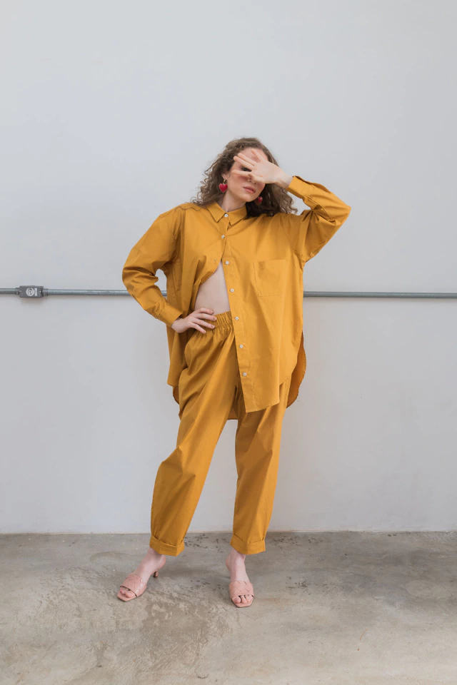 Com uma modelagem ampla e confortável, a Camisa Pura é confeccionada em tricoline com elastano, um tecido encorpado que acompanha os movimentos do corpo sem perder a estrutura.