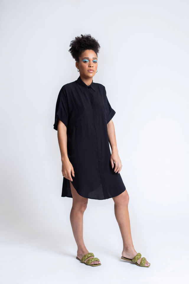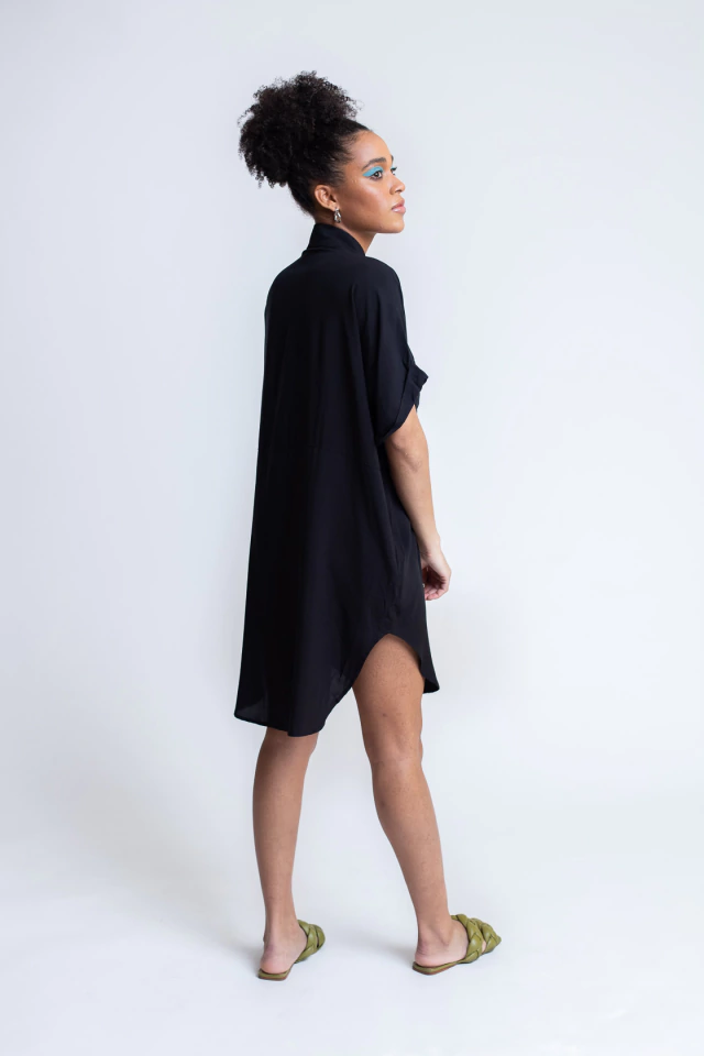 Modelo de camisa ampla com fenda lateral e detalhe da manga dobrada. Com bolsos laterais e frontais. A camisa veraneio também fica linda como vestido. Dica: escolha uma numeração maior do que costuma usar para ficar super confortável e ter o caimento perfeito. O tecido em viscose tende a encolher de 3 a 5 cm com as lavagens.